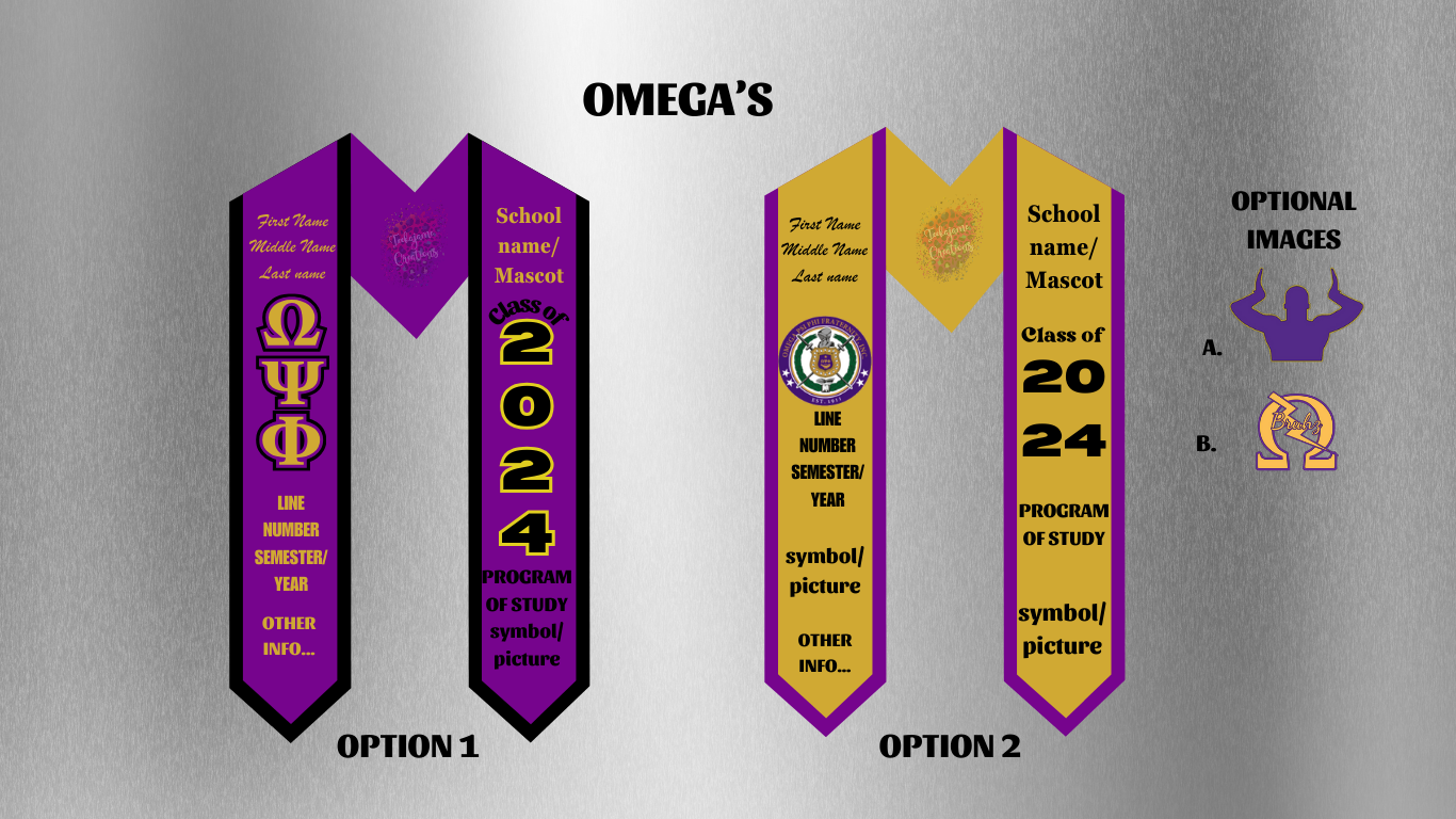🎓 Represent your Omega brotherhood with pride on graduation day in a custom Omega graduation stole. Handcrafted from premium satin and tailored to your design, this stole is the perfect way to honor your academic journey and fraternity legacy.